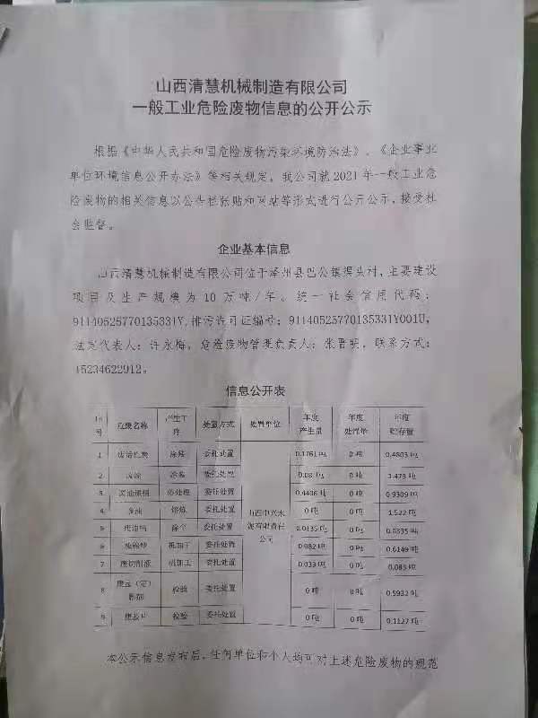 星空在线登录·(中国)官方网站一般工业危险废物信息的公开公示
