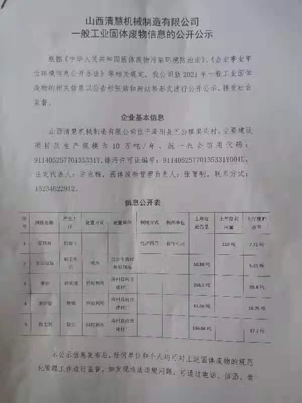 星空在线登录·(中国)官方网站一般工业固体废物信息的公开公示